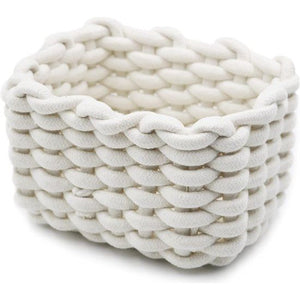 Opbergmand, katoen, gebreide mand, decoratief, natuurlijk, rechthoekig, waterdichte opbergdozen, organisatoren voor babykamer, slaapkamer, woonkamer, wit, klein