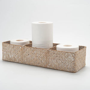 De opbergmand bestaat uit 100% natuurlijk handgeweven zeegras. Het metalen frame zorgt voor stevigheid en vorm; 3 vakken om te organiseren Het pakket bevat een zeegraskorf: 42 cm x 14 cm x 9 cm Ideaal voor tafelbladen of planken. Organiseer kleine dingen zoals sleutels, cosmetica of laden voor het opbergen van ondergoed of sokken. Kan ook in de wasruimte worden gebruikt om toiletpapier te organiseren Multifunctioneel: kan worden gebruikt als opbergdoos, mandmand, opbergdoos, toiletmand