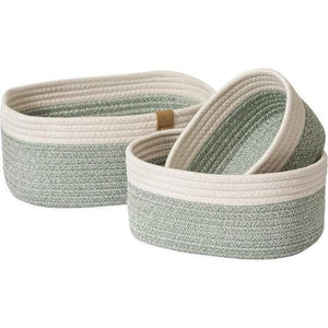 Katoenen touwmand: onze karakteristieke plankenmandenset is gemaakt van gevlochten touwen met hoogwaardig katoen en deels nylon, wat de duurzaamheid bevordert en de vorm van de manden versterkt. Het eenvoudige ontwerp past perfect bij elke interieurstijl en houdt uw woonruimte netjes en opgeruimd. Maten en specificaties - Deze unieke mandenset voor kinderkamers bestaat uit een grote mand van L 32 x B 22,5 x H 14 cm, een middelgrote mand van L 29 x B 21 x H 12 cm en een kleine mand van L 18 x B 13 x H 10 cm. Veelzijdige opbergoplossing - deze mandenset zorgt voor orde en overzicht in je huis. Elke mand kan op verschillende plekken geplaatst worden: in de badkamer, slaapkamer, op een plank of zelfs in een kast. Ruimtebesparend - Onze stijlvolle verzorgings