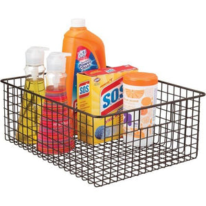 Veelzijdig inzetbaar: als opbergmand in de voorraadkast of als bewaardoos voor reinigingsbenodigdheden onder de gootsteen – deze mand is geschikt voor vele doeleinden. Geïntegreerde handgrepen: door de geïntegreerde handgrepen kan de opbergmand voor keuken en voorraadkast eenvoudig en veilig worden vervoerd, verplaatst en moeiteloos uit het rek worden getrokken. Chique design: de roostermand overtuigt niet alleen functioneel, maar maakt ook optisch een goede indruk. De metalen mand is een echte blikvanger. BESTENDIG MATERIAAL: de keukenhulp is gemaakt van robuust metaal, dat een lange levensduur belooft. De bronskleurige uitvoering maakt hem bovendien tot een optisch hoogtepunt. Groot formaat: de mand is ruim met de afmetingen van 40,6 cm x 30,5 cm x 15,2 cm en creëert veel ruimte om ook grote voorwerpen op te bergen en orde in de keuken te garanderen.