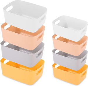 Plastic opbergmand: 4 kleuren, heldere kleuren kunnen een landschap van huishoudtextiel worden. Verschillende soorten voorwerpen worden in verschillende gekleurde dozen bewaard voor je gemak. Opbergdoos in twee verschillende maten: 4 grote delen: 30 x 20 x 12 cm en 5 kleine onderdelen: 20 x 14 x 7 cm. Twee verschillende maten zijn voldoende om aan je opbergbehoeften te voldoen. Hoogwaardige materialen: de opbergmand bestaat uit hoogwaardig PP-materiaal om vlekken en geuren effectief te weerstaan. Glad oppervlak om letsel aan de handen te voorkomen.