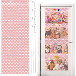 Opslag voor knuffeldieren, boven de deur-organizer voor knuffeldieren, babyaccessoires en vochtige doekjes, ademende hangorganizer met 4 grote vakken voor kinderkamer, slaapkamer, roze