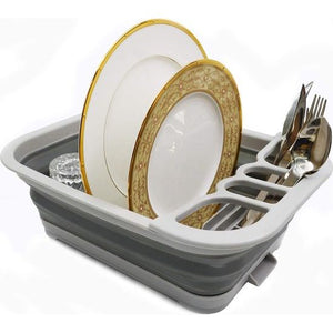 Opvouwbare afdruiprek met afdruiprek, opvouwbare droogrekset, draagbare serviesorganizer, ruimtebesparend keukenopbergvak, grijs, s