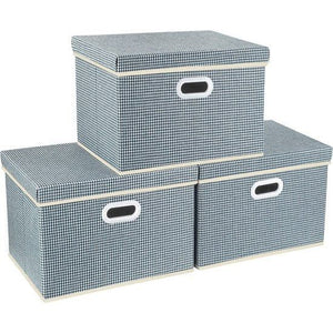 Opvouwbare opbergdozen met deksel, grote opbergdozen voor kledingkast, kinderkamer, kist met deksel voor het organiseren van huis en kantoor, 3 stuks, blauw