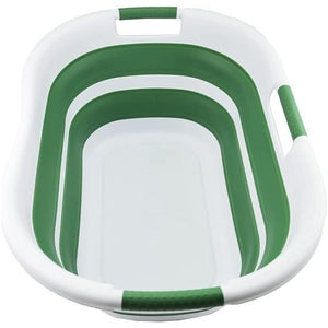 Opvouwbare wasmand van kunststof, 40 l, foldable pop-up-bewaardoos/organizer, draagbare wasbak, ruimtebespare wasmand (1, wit/donkerzeegroen)