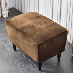 Ottomaanse hoes voor krukhoes - fluwelen kruk voor voetenbank, rechthoekig, stretch overtrek, poef, beschermer, wasbare stoelhoes - Bruin, 1 stuk