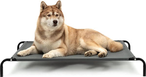 Outdoor hondenbed verhoogd, stabiel huisdierbed met goede luchtcirculatie beschermt tegen kou van de vloer, 117 x 85 cm, afneembare overtrek van ademend netweefsel, robuust metalen frame, grijs