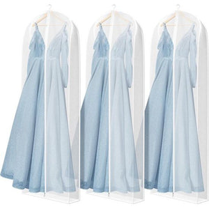 Pak van 3 72" kledinghoezen lang 182 x 60 x 17 cm, transparante organza reistas kledingzakken met ritssluiting, ademende kledinghoes voor heren voor lange jurken, jassen, jassen, pakken