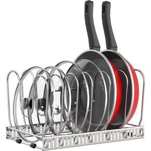 pannenhouder voor lade, uitbreidbare potdekselhouder met 7 verstelbare verdelers, potdeksel opbergpan organizer dekselhouder voor keuken, zilver