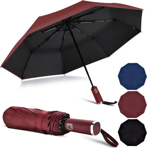 Uitstekende wind- en waterbestendigheid: de winddichte parasol is versterkt met 10 met hars versterkte glasvezel parasolribben, die flexibel zijn en zelfs bij sterke wind kunnen worden gebruikt zonder om te vallen. Het is gemaakt van een dubbele laag waterdicht 210T-materiaal, dat sneldrogend en waterbestendig is. Bestand tegen harde wind en hevige regen. 99% UV-bescherming: om UPF 50+ bescherming te bieden die 99% van de UV-stralen blokkeert, hebben onze paraplu's een extra laag UV-bescherming. Volledige bescherming voor u op zonnige of regenachtige dagen. Eenvoudig in gebruik: onze opvouwbare paraplu heeft een volautomatisch systeem dat perfect is voor bediening met één hand. Open of sluit de paraplu met één druk op de knop. Het is gemakkelijk mee te nemen en neemt niet veel ruimte in beslag. Geschikt voor reizen en buitenactiviteiten van mannen en vrouwen. Laat deze automatische paraplu binnen enkele seconden opengaan bij plotselinge regen, perfect voor snelle toegang tot auto's, gebouwen of tenten. Ideaal levensaccessoire: het ergonomische, antislip rubberen handvat past zich aan de vorm van uw hand aan en zorgt voor maximaal comfort en eenvoudige bediening. Onze paraplu's zijn lichtgewicht (ca. 0,4 kg), compact en draagbaar, zon-, wind- en waterdichte multifunctionele automatische paraplu biedt u bescherming als geen ander. Geschikt voor werk, school, toerisme, zakenreizen, enz. Het is een ideaal levensaccessoire.