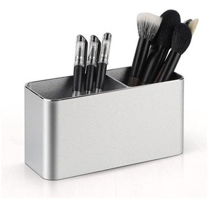 Pennenhouder bureau zilver metaal, bureau-organizer aluminium, cosmetica-penseelhouder, pennenkoker voor kantoor, kinderen, rechthoekig