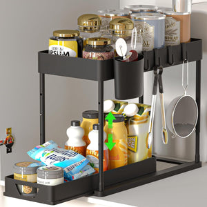 Plank voor onder de gootsteen Uittrekbare kastorganizer onder 2 lagen met 4 haken en 1 hangende bekerlift met voor keukens