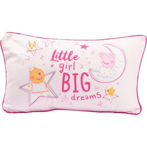 Het kussen met Peppa Pig en de tekst "Little girl Big Dreams" is zowel een knuffelig stoffen kussen voor jong en oud, als een decoratie voor elke kinderkamer. Het pluizige pronkstuk: het knuffelkussen met Peppa Pig print kan op vele manieren worden gebruikt, zoals een kinderkussen, bankkussen, in de auto, in de slaapkamer als hoofdkussen of als zitkussen. Knuffelkussen: Het kussen, gemaakt van polyester, heeft een afmeting van 40 x 23 cm. Met de effen achterkant past het in elke woonkamer. Origineel cadeau-idee: verras niet alleen liefhebbers met dit bijzondere sierkussen.