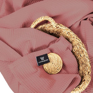 Premium bedspread 220 x 240 cm XXL - waffle piqué 100% katoen - lichtgewicht woondeken met wafelpatroon - katoenen bedsprei, banksprei - bankdeken (oudroze)