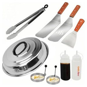 Professionele BBQ-grillspatelset, barbecuespatel, ideaal voor Plancha-kookplaat, met smeltkoepel van 30,5 cm, 9-delig