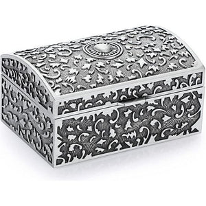 Siersieradenkap - met vintage zilveren kleur en klassiek bloemenreliëfoppervlak. Dankzij de prachtige en extravagante gegraveerde gravure is de juweliersdoos decoratief en elegant om uw dressoir te versieren Gemakkelijk te openen - een vergelijking voor dagelijks gebruik - past op ringen en oorbellen, ketting en andere kleine voorwerpen. Gevoerd met fluweel om uw sieraden te beschermen, krassen en stof te voorkomen DRAAGBAAR Afmetingen (L x B x H): 8 x 5,4 x 4 cm, neemt weinig ruimte in beslag op uw tafel. Geschikt voor kleine sieraden zoals oorbellen, ringen en kettingen. Controleer de maat zorgvuldig voordat u koopt Prachtig cadeau: deze stijlvolle en elegante sieradendoosjes zijn zeer mooie kerst-, jubileum-, Valentijnsdag-, verjaardags- en huwelijkscadeaus voor je geliefde, vriend of familie Gemaakt van hoogwaardige zinklegering, stevig en duurzaam, bestand tegen dagelijks gebruik zonder roest en vervaging