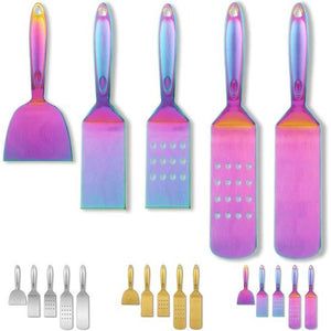 Regenboog BBQ grillbestek, 5 stuks, grillaccessoires, roestvrijstalen handgreep met baklite monteren, grillgereedschap smelt niet, valt niet los en hittebestendig