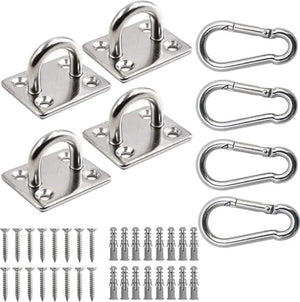 Materiaal: de oogplaat en karabijnhaak zijn gemaakt van stevig 304 roestvrij staal, dat een hoge sterkte en hardheid heeft. Ze hebben een goed draagvermogen en kunnen een lange levensduur garanderen. Eenvoudig te bedienen: de robuuste oogplaat met oog heeft een lus-design en de karabijnhaak is uitgerust met een veerdeur, die gemakkelijk kan worden geopend en gesloten. Ze kunnen met elkaar worden gecombineerd, kunnen met touwen, kettingen en riemen worden gebruikt en zijn geschikt voor een groot aantal bindings-, takelage- en verankeringsmaterialen. 【Verpakking】: je ontvangt 4 rechthoekige oogplaat en 4 karabijnhaken, met 16 schroeven en 16 kunststof uitbreidingspluggen. De maximale belastbaarheid van een oogplaathaak bedraagt 40 kg. 【Ontwerp】Het ontwerp met 4 gaten verhoogt de stabiliteit van de oogplaat, waardoor hij stabieler en steviger wordt. De vierkante sluitring heeft verzonken schroefgaten, de schroeven zullen na de installatie niet uitsteken en het uiterlijk niet beschadigen. Meerdere toepassingen: de dekplaat en karabijnhaak kunnen binnen of buiten worden gebruikt en kunnen worden gebruikt om schommels, hangmatten, marine-dektouwen, schaduwzeilen, decoratieve touwen, binnen- en buitenuitrusting enz. op te hangen.