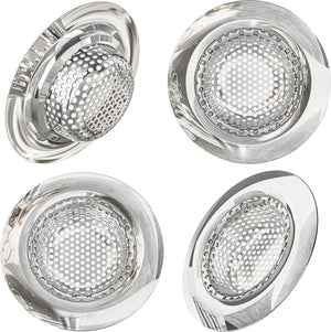 Roestvrijstalen afvoerzeef met een diameter van 7 cm, roestvrij haarzeef, set van 4, fijnmazig, haarzeef, douche voor gootsteen, afvoerzeef, keuken, afvoerzeef, badkuip, afvoerzeef
