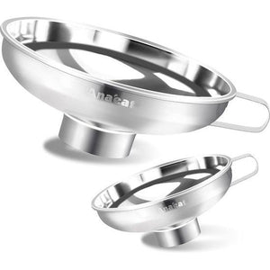 Veilig en duurzaam: de roestvrijstalen trechterset met brede hals bestaat uit professioneel materiaal dat geschikt is voor levensmiddelen, dat corrosiebestendig is, niet buigt, niet bekrast en niet lekt. BPA-vrij, koud- en hittebestendig. Met zijn robuuste, duurzame en moeilijk te breken materiaal kun je vertrouwen op de kwaliteit van ons product. Ontwerp met brede mond en handgreepringen: de Anaeat brede hals trechter is ideaal voor het overbrengen van grote voedselverpakkingen in weckpotten. Het maakt snelle overdracht, tijdbesparing en gemak mogelijk. Het ontwerp van de handgreep zorgt voor comfort voor dagelijks gebruik en opslag, het helpt je bij het overbrengen van hete vloeistof niet te verbranden en helpt je om het evenwicht te bewaren. Het is gemakkelijk op te bergen en kan aan een haak worden opgehangen. Veelzijdig inzetbaar: de set van (10 cm en 14 cm) roestvrijstalen brede hals trechters is perfect geschikt voor de overdracht van vloeibare en droge ingrediënten, met name tussen containers, om lekken op het werkblad te voorkomen. Geschikt voor fruitjam, specerijen, granen, bonen, suiker, poeder, havermout, soepen en andere toepassingen.