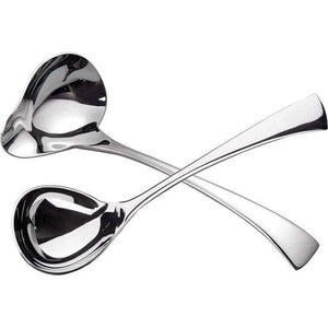 Roestvrijstalen soeplepel en pollepelset met brede handgrepen en schuine mond - hoogwaardig keukengerei voor veelzijdig gebruik en stijlvol koken