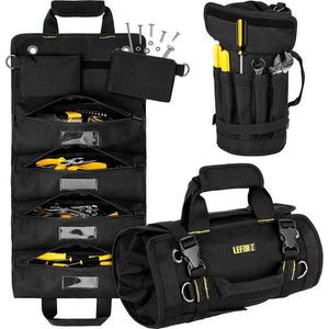 Verbeterde gereedschap-roltas: na grondig onderzoek van de markten bestaat onze gereedschap-roltas uit duurzaam, duurzaam 1000D-weefsel, dat krasbestendig, slijtvast en scheurvast is. Met ritssluiting aan het einde om te stoppen. De ritssluiting valt eraf en de versterkte naden maken deze tas duurzaam Gereedschap met 11 rolzakken: deze oprolbare gereedschapstas beschikt over 4 verzonken en verbrede vaste grote vakken, 2 kleine afneembare vakken met D-ringen en 5 vakken buiten de tas, zodat je meer voorwerpen kunt opbergen en gereedschappen zoals schroevendraaiers efficiënt kunt organiseren, moersleutels, bankgrepen, ratels, tangen en meer. 2 uitneembare kleine gereedschapsvakken vergemakkelijken het dragen en verplaatsen van kleinere gereedschappen zoals schroeven, spijkers en boren. Duidelijke etikettentas: de 4 vaste grote vakken van onze gereedschapsrol-opbergtas zijn allemaal uitgerust met labelzakken om je gereedschap in categorieën op te bergen, zodat je gemakkelijk kunt vinden wat je nodig hebt in plaats van ongeorganiseerd te zijn. Compact en draagbaar: onze gereedschap-roltas beschikt over drie verschillende draagmethoden: handheld + schouder + hangend om aan de eisen van al je werkscenario's te voldoen. De rolgereedschapstas is compact, zodat je belangrijke noodgereedschappen op reis of op het werk kunt meenemen en voor eenvoudig transport en opslag op je vrachtwagen, auto, boot, motorfiets of zelfs fiets kunt opbergen. Perfect cadeau: deze gereedschapsrol-organizer is een must voor monteurs, framebouwers, loodgieters, elektriciens, timmerlieden en knutselaars. Perfect cadeau voor je man, vader, familie of vrienden.