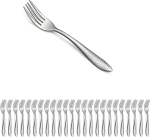 De verpakking bevat: 12 dessertvorken. Onze vorken zijn gemaakt van hoogwaardig roestvrij staal in levensmiddelenkwaliteit, robuust en duurzaam met een glad oppervlak dat je mond niet bekrast. Deze dessertvorken hebben een mooi gewicht en een mooie maat om comfortabel vast te houden. De tanden en het handvat maken het mogelijk om je levensmiddelen gemakkelijk te stoten en te plukken. Tijdloos, elegant design maakt dit bestek geschikt voor formele evenementen, feesten, bruiloften, verjaardagen of dagelijkse maaltijden.