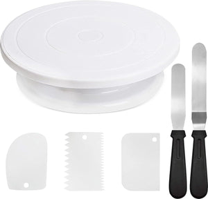 Roterende taartplaat, roterende taartplaat, breng 2 taartspatels en 3 taartschrapers mee, geschikt voor beginners en professionals, draaitafel taartplaat met voet (set van 6)