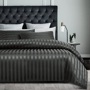 Satijn beddengoed 200 x 200 cm grijs - zijdeglans gestreept beddengoed set 3-delig hoogwaardig luxe dekbedovertrek met verborgen ritssluiting en 2 kussenslopen 80 x 80 cm, grijs