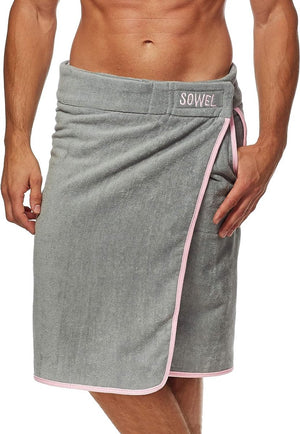 saunakilt met klittenbandsluiting voor heren, 100% katoen, 140 x 60 cm, grijs/roze, 60 x 140 cm