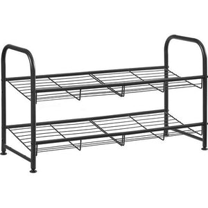 Afhankelijk van je behoefte: wil je je schoenen plat ordenen? Geen probleem. Of toch liever gehoekt? Dat is duidelijk. Je kunt zelfs meerdere planken op elkaar stapelen om meer ruimte te creëren, de verbindingsstukken hebben wij ook meegeleverd. Een oase voor al je schoenen: nooit meer chaotische schoenstapels, korte laarzen helemaal bovenop, gymschoenen op de onderste plank en pantoffels in het onderste vak! En de hoge hakken? Nu hang je ze gewoon aan de zijstangen op. Stabiel en betrouwbaar: met een robuust stalen frame en verstelbare poten biedt dit schoenenrek een sterke grip (per niveau 10 kg belastbaar). Bovendien zorgt de extra stang aan de voorzijde voor meer veiligheid. Schoenen vallen eraf? In geen geval. De montage is een fluitje van een cent. Bouw je nieuwe schoenenrek in slechts enkele minuten op. Waarom zo snel