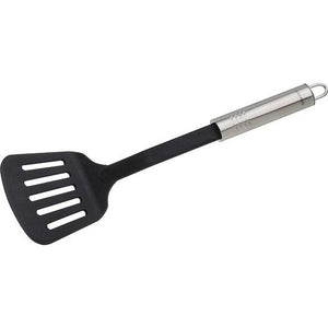 Gebruik: comfortabel koken door de ergonomische handgreep Praktisch: door het geïntegreerde ophangoog kan de keukenhulp ruimtebesparend worden opgeborgen Inhoud: 1 x sleufspatel - in bewezen kwaliteit van Fackelmann Materiaal: handvat van hoogwaardig roestvrij staal, functioneel deel van kunststof – hittebestendig tot 270 °C & vaatwasmachinebestendig Afmetingen: ca. 33 x 5,5 x 8 cm (l x b x h)