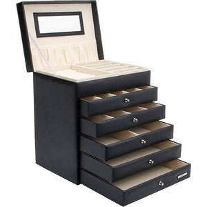 Seelux make-up-doos, sieradendoos, verkrijgbaar in verschillende maten, zwart-wit, zwart, 5 schuiflades
