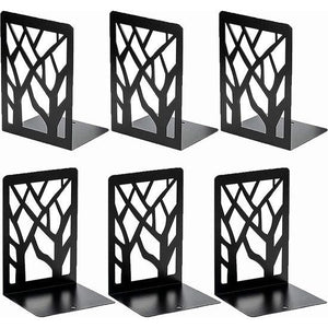 Set of 6 Metal Bookends, Heavy Bookends, Scratch-Resistant and Non-Slip Bookends, Black for Children, Office, Living Room and Study Room, School, Bookstore and Library (17 x 12 cm)