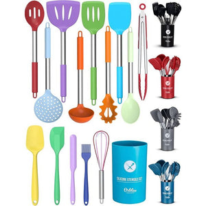 • 14 premium keukengereedschappen: onze siliconen keukenhulpset bevat 14 stijlvolle en duurzame gebruiksvoorwerpen en een geraffineerde houder om ze allemaal op hun plaats te houden. Het heeft alles wat je nodig hebt voor al je culinaire inspanningen.
