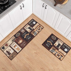 Set van 2 antislip keukenmatten en vloerkleden, wasbare rubberen mat, deurmatloper, microvezeltapijtset
