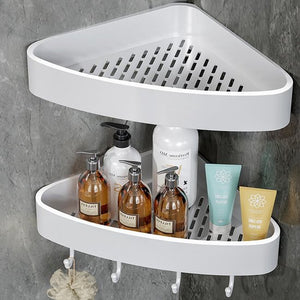 Set van 2 doucheplanken zonder boren, zelfklevende doucheplank, kunststof badkamerorganizer, hoekplank, doucheplank, hoekdoucheplank, badkamerplank, badkamerplank, douchemand voor badkamer en keuken, wit