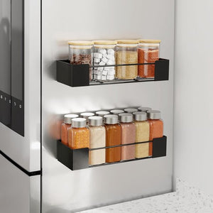 Set van 2 kruidenrek, magnetisch koelkastrek, zonder boren, lichtgewicht magnetische kruidenorganizer en -opslag, zwart