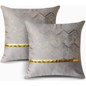Set van 2 kussenslopen voor bank/auto/slaapkamer luxe moderne minimalistische gouden lederen stiksels, golvende streep decoratieve kussensloop 45 x 45 cm (zilver)