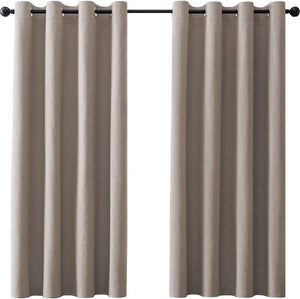 Set van 2 verduisteringsgordijnen, ondoorzichtige gordijnen met ringen, beige, 145 x 132 cm (h x b), thermogordijn, linnen, kort, voor woonkamer, kinderkamer, slaapkamer, set van 2