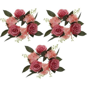 Set van 3 kaarsenringen voor conische kaarsen, rozen kaarsenkrans, bloemenkrans, decoratieve krans, rozenkoppen krans, hanger voor Pasen, bruiloft, Valentijnsdag, middenstukken, tafeldecoratie, roze.