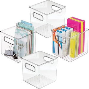 Set van 4 opbergdozen voor de werkplek – voor het opbergen van kantoorbenodigdheden en schrijfwaren – kunststof doos voor de brievenbak – doorzichtig
