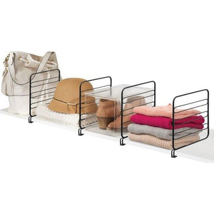Uitgebreide set: dit opbergsysteem voor kledingkast bestaat uit vier identieke delen en biedt zo voldoende scheidingsmogelijkheden voor de hele kledingkast. PERFECTE ORGANISATIE: dankzij de praktische plankverdelers kun je de planken gemakkelijk scheiden en de kledingstukken zoals T-shirts, broeken, truien enz. netjes opbergen en organiseren. Eenvoudige montage: alle vakverdelers kunnen eenvoudig over de planken worden geschoven. Er is geen gereedschap nodig voor de montage. Zo eenvoudig was opbergen zeldzaam! Robuuste uitvoering: het systeem voor de indeling van de kledingkast is gemaakt van duurzaam metaaldraad en is afgewerkt met een zwarte afwerking voor een aantrekkelijke look. Goede afmetingen: de scheidingswandset beschikt over de afmetingen van elk 20,3 cm x 5,1 cm x 23,2 cm en past dus probleemloos in de meeste kledingkasten.