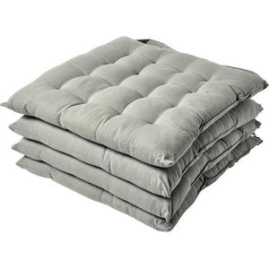 • Set van 4 zitkussens met banden en praktische knoopsluiting. Afmetingen per stoelkussen: ca. 40 x 40 x 5 cm. Kleur: grijs.