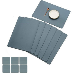Set van 6 placemats en 6 onderzetters veeg schoon antislip PVC hittebestendige placemats voor keukentafel 30 * 45cm blauw