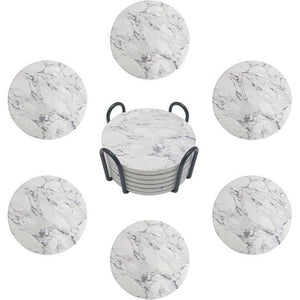 set van 6 ronde marmeren onderzetters met metalen handvat voor huisdecoratie, feesten, drankjes, koffie, wijn, bekers en bar