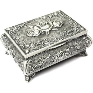 Sieradendoosje van metaal in antieke look, bloemenmotief met 3 rozen