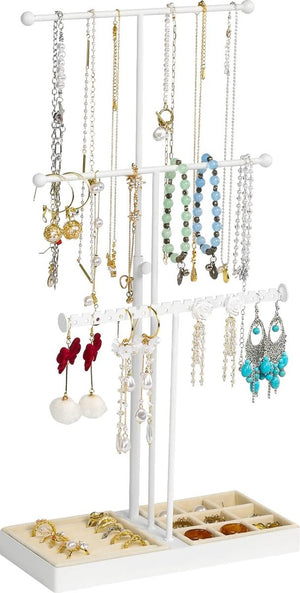 Sieradenstandaard, in hoogte verstelbaar, kettingstandaard, sieradenhouder, sieradenopslag met dienblad, fluwelen doos, kan worden gebruikt als ringhouder, oorbelstandaard, sieradenstandaard,