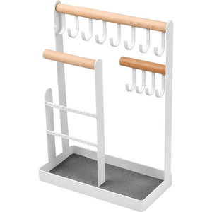 Sieradenstandaard, sieradenhouder, oorbel, opbergen, kettingstandaard, sieraden, halskettingen, opbergen, sieradenstandaard met opbergbasis voor halskettingen, armbanden, ringen, wit