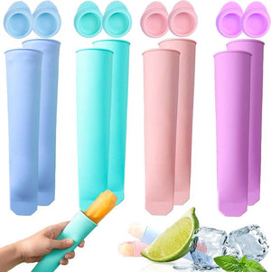 Siliconen ijsvormpjes - 8 siliconen ijshoornvormen met deksels in 4 verschillende kleuren. Elke vorm bevat 100 ml. MATERIAAL - De ijsvormen zijn gemaakt van zachte siliconen, BPA-vrij, niet giftig, geurloos en herbruikbaar. RUIMTEBESPAREND - De ijsvorm-waterijshoorntjes van siliconen zijn 19 cm lang en hebben een diameter van 4 cm aan de bovenkant. Het deksel heeft een schroefdop die kan worden gesloten en horizontaal in de vriezer kan worden geplaatst om ruimte te besparen. GEMAKKELIJK TE VERWIJDEREN - Deze siliconen ijsvormen zijn flexibel en glad. Eenmaal bevroren, kun je ze gemakkelijk uit de ijslollies halen nadat je ze 1-2 minuten op kamertemperatuur hebt laten staan. GENIET VAN DE ZOMERKOELHEID - Met deze siliconen ijsvormen kun je in de hete zomer samen met je familie en vrienden genieten van waterijs.